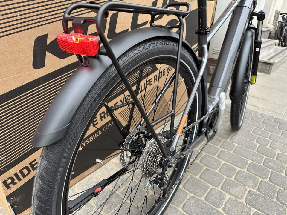 rama KELLYS E-CRISTY R-series - advanced robotic welded 6-series aluminium alloy / Designed & manufactured in EUROPE / integrated removable battery, 1.5“ tapered HT silnik PANASONIC GX Ultimate, 95 Nm, 36 V akumulator KELLYS Re-Charge V10 Li-ion internal removable 725 Wh / capacity 20 Ah, powered by BMZ przełącznik PANASONIC wyświetlacz licznika PANASONIC Bluetooth® 5.0 navigation Side Color Display widelec SR SUNTOUR NVX 30 NLO DS (29"), 100 mm, coil spring korby MIRANDA Delta (36T) - length 170 mm przerzutka tył SHIMANO Cues U4000 (direct mount) manetki SHIMANO Cues SL-U4000-9 Rapidfire Plus ilość biegów 9 kaseta SHIMANO Linkglide CS-LG300-9 (11-41T) łańcuch SHIMANO Linkglide CN-LG500 (122 links) hamulce SHIMANO MT200 hydraulic disc dżwignie hamulcowe SHIMANO BL-MT200 tarcze hamulcowe 160 mm front / 160 mm rear piasty SHIMANO TX505 Disc Center Lock (32 holes) obręcze KLS Draft Disc 622x21 (32 holes) szprychy stainless steel black opony IMPAC Bigpac 55-622 (28"x2.15) TwinSkin lub KENDA Kwick Nine (29"x2.0) - ReflectiveLine stery FSA 1.5 semi-integrated wspornik kierownicy PROMAX a-head adjustable - diam 28.6 mm / bar bore 31.8 mm / length 85 mm kierownica KLS Active RiseBar - diam 31.8 mm / rise 18 mm / width 700 mm chwyty KLS Wave 2Density ergonomic sztyca KLS Active - diam 30.9 mm / length 350 mm siodło SELLE ROYAL Vivo pedały plastic światło przednie AXA Compactline 35 światło tylne TRELOCK Duo Flat błotnik plastic akcesoria alloy carrier, adjustable kickstand, bell rozmiary ram S / M / L