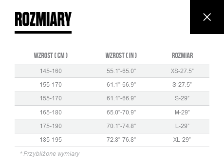 | Rozmiar koła | 29" |